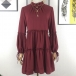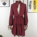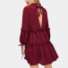 Sexy Backless Lantern Sleeve Ruffle Stand Collar Solid Color Cake Dress