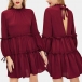 Don't know what to wear for your night dating or weekend gatherings with your friends? Then look no further than this piece. Solid color style,the backless,lantern sleeve and ruffle stand collar design make this piece look so sweet yet distinctive. Dress it up with your favourite heels,you can look beautiful and charming enough!