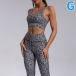 Sexy Backless Leopard Printed Sling Crop Top + High Waist Leggings Sports Two-piece Set
