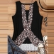 Sexy Backless Leopard Spliced Sleeveless Round Neck T-shirt