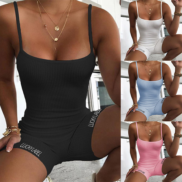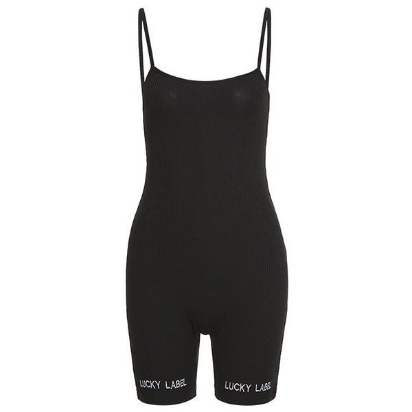 Sexy Backless Letters Embroidery Solid Color Slim Fit Sling Romper