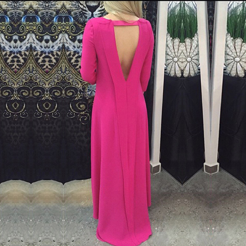 Elegant by way of its sweeping maxi length and stunning V-cut back, this dress knows how to