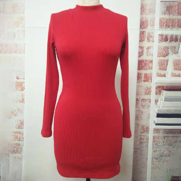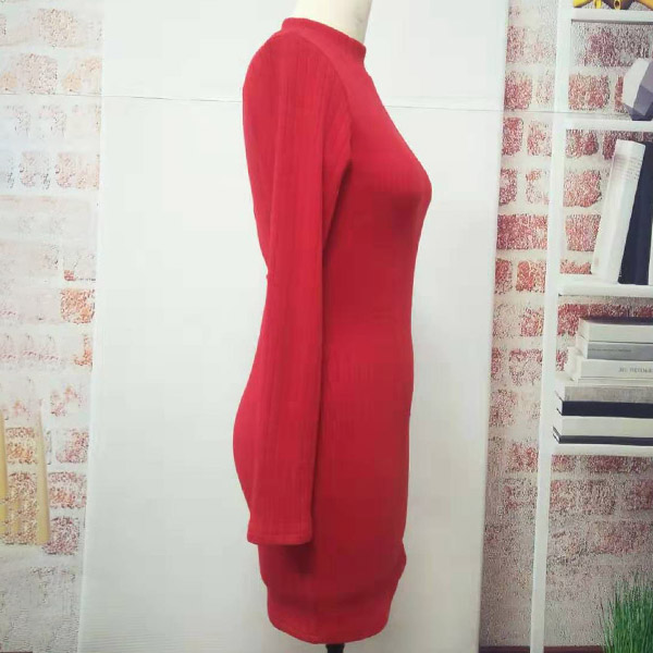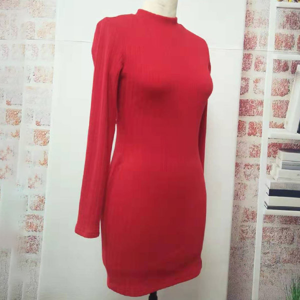 Sexy Backless Long Sleeve Mock Neck Solid Color Tight Dress