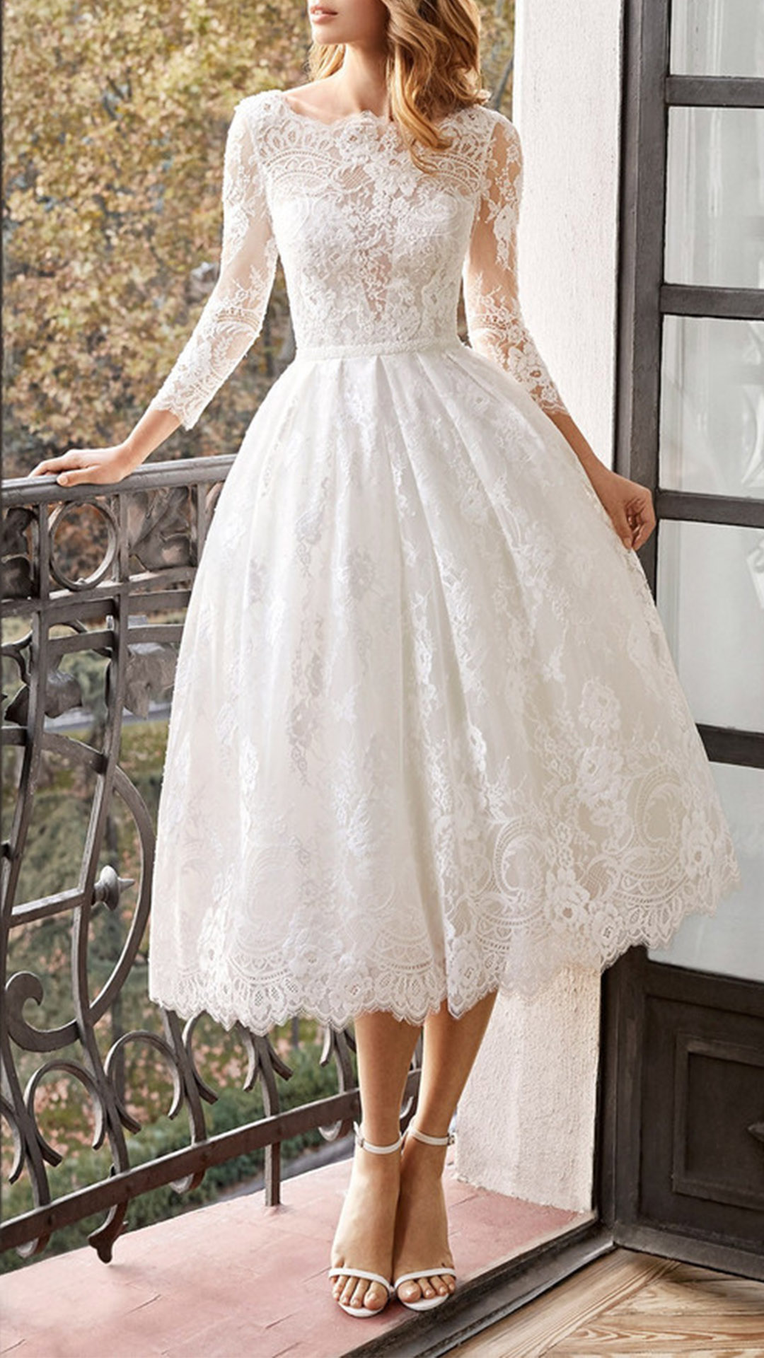 Sexy Backless Long Sleeve Round Neck High Waist Lace Wedding Dress