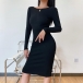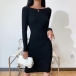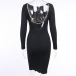 Sexy Backless Long Sleeve Round Neck Slim Fit Chain Dress