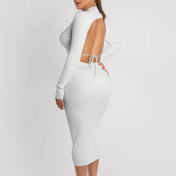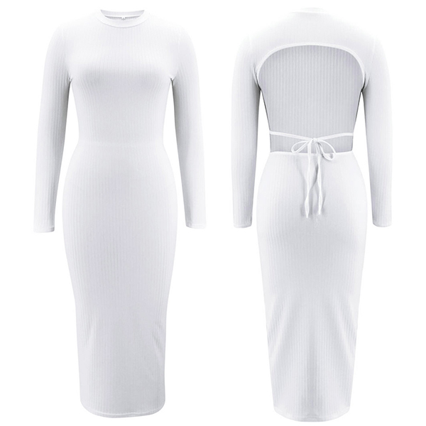 Sexy Backless Long Sleeve Round Neck Slim Fit Dress