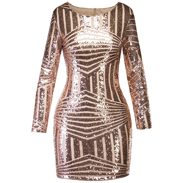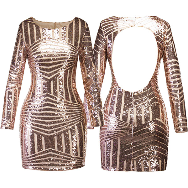 When stepping into a party with this sequin dress,you can easily stand out in the crowd. The backless design makes this piece look so sexy and alluring. Finished with long sleeve,round neck and a fit silhouette,this dress can offer you an amazing party look by teaming with your sexy heels and elegant clutch!