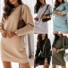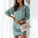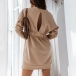 Sexy Backless Long Sleeve Round Neck Solid Color Dress
