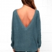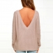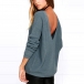 Sexy Backless Long Sleeve Round Neck Solid Color Knit Top