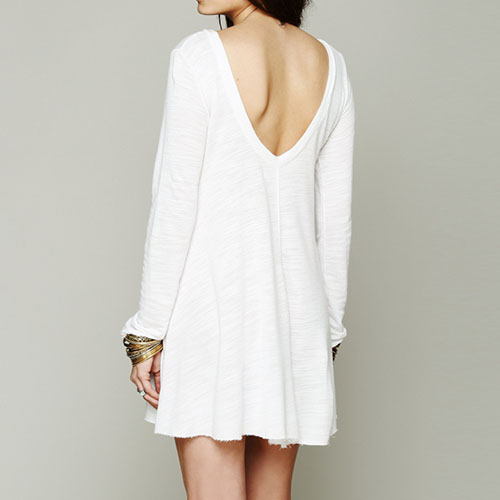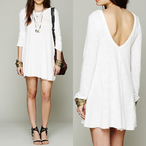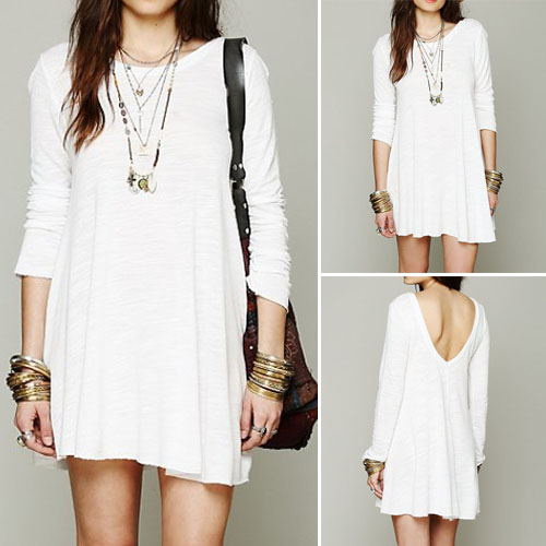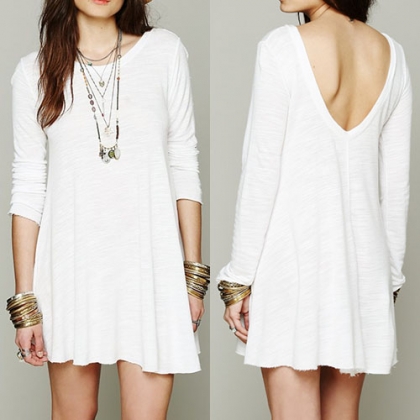 Sexy Backless Long Sleeve Round Neck Solid Color Loose Dress