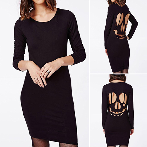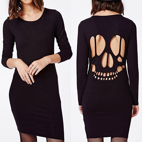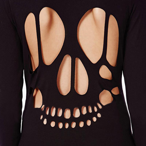 A sleek bodycon silhouette, a super-stretchy and soft fabric, and a skull head shaped backless