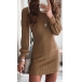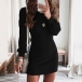 Sexy Backless Long Sleeve Round Neck Solid Color Slim Fit Dress