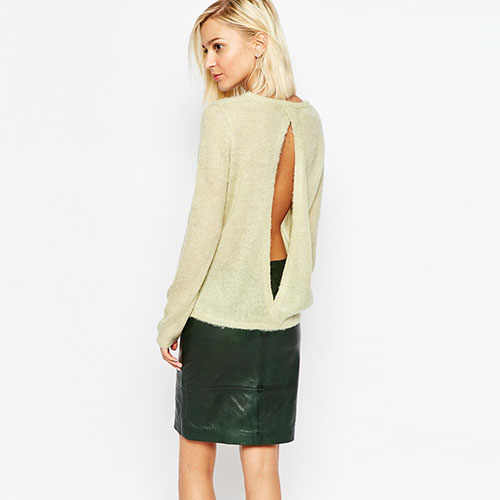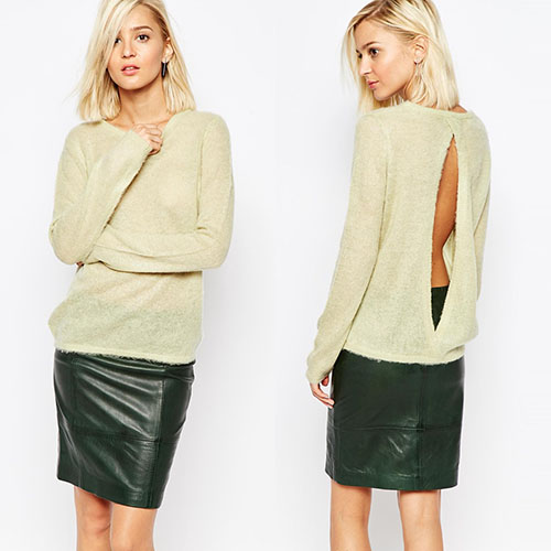 color style,with long sleeve,round neck and backless design,simple but filled with sexy and