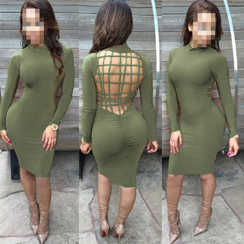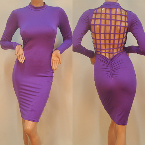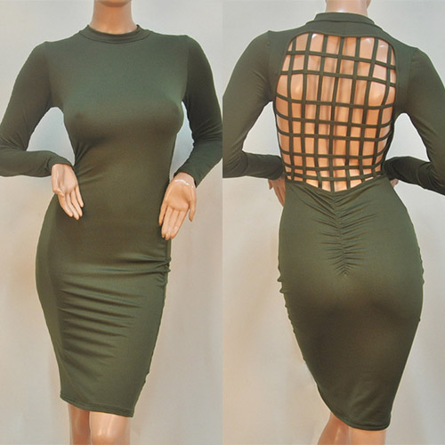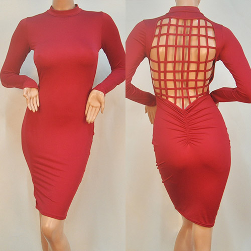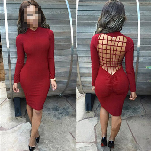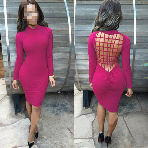 From the front, this long sleeve bodycon dress looks clean and simple. Turn it around, however,