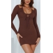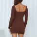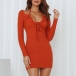 Sexy Backless Low-cut Halter Long Sleeve Slim Fit Solid Color Dress