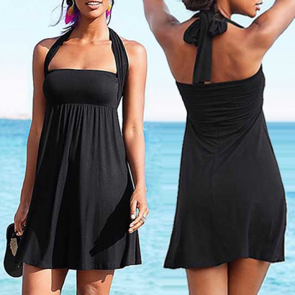 Sexy Backless Multiple Wearing Styles Solid Color Beach Dress