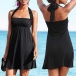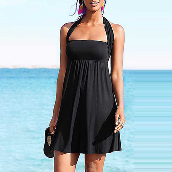 For your beach days,this dress can easily rouse your attention. Solid color tone design makes it look simple yet generous. Another design highlight is that this piece can offer you different wearing styles such as strapless style,halter style and so on. Just enjoy your beach days with this dress!