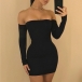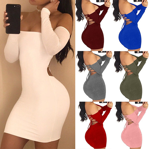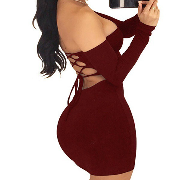 Sexy Backless Off-shoulder Boat Neck Long Sleeve Tight Dress