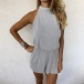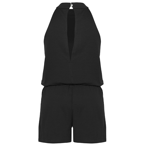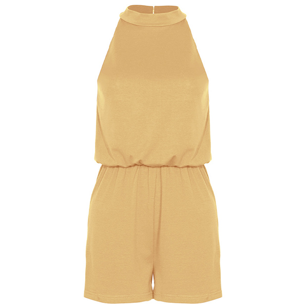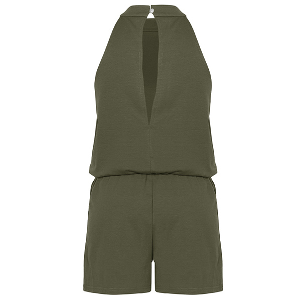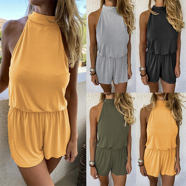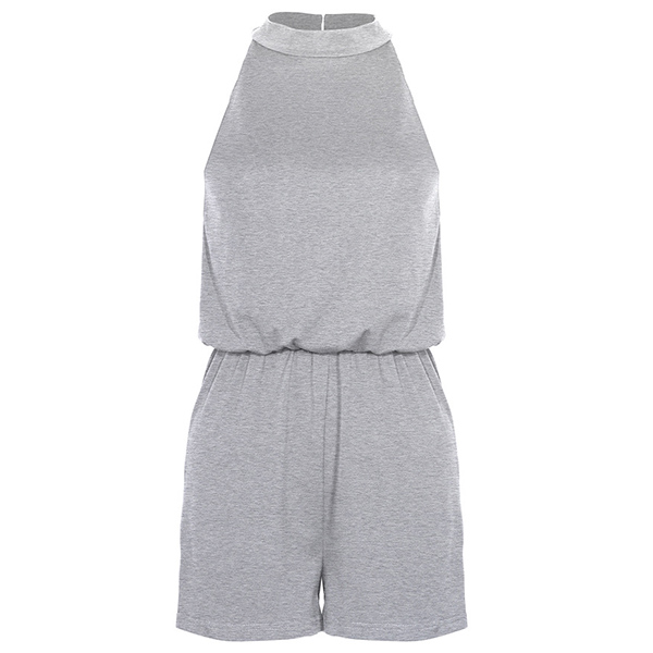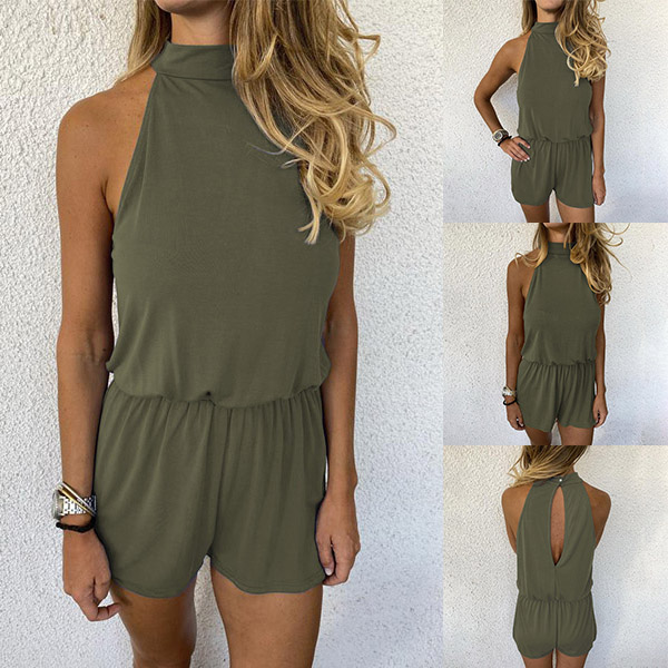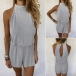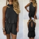 Sexy Backless Off-shoulder High Waist Solid Color Halter Romper
