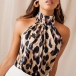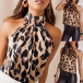 Sexy Backless Off-shoulder Leopard Printed Halter Top