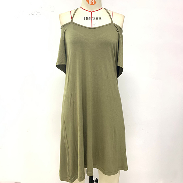 Sexy Backless Off-shoulder Short Sleeve Solid Color Sling Dress