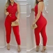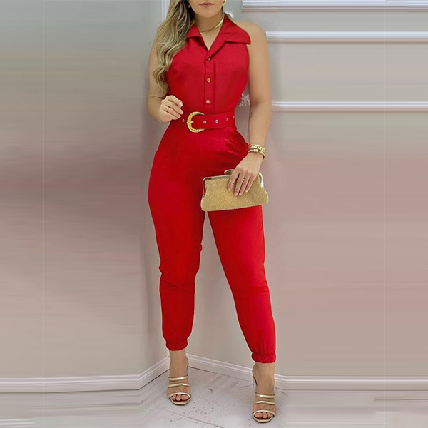 There is no wonder that you can easily be the focus when you don this jumpsuit. It comes with a bright red tone,which can help you gain more eyes. Finished with backless,POLO collar and high waist design,this piece not only can showcase your slender figure,but also can exude your alluring side. So why not take interest in it?