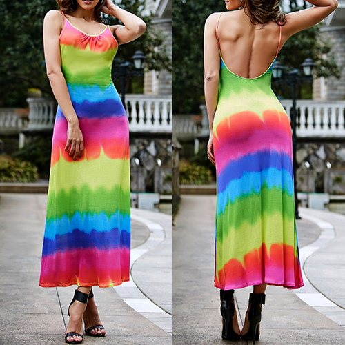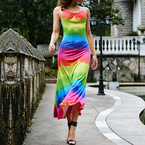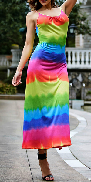 Infuse an edgy and yet flirty touch into your wardrobe with this dress. Sling style,its rainbow printed design makes