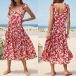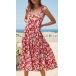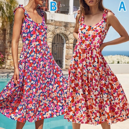 To greet the sun-soaked summer days,you can just slip into this beautiful dress. Its vibrant floral print details make this piece look so eye-catching,while the backless and knotted design at the shoulder part will make this piece look more stylish and attractive. Any girl can look effortlessly charming and beautiful in this dress.