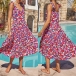 Sexy Backless Round Neck Knotted Sleeveless Printed Summer Dress