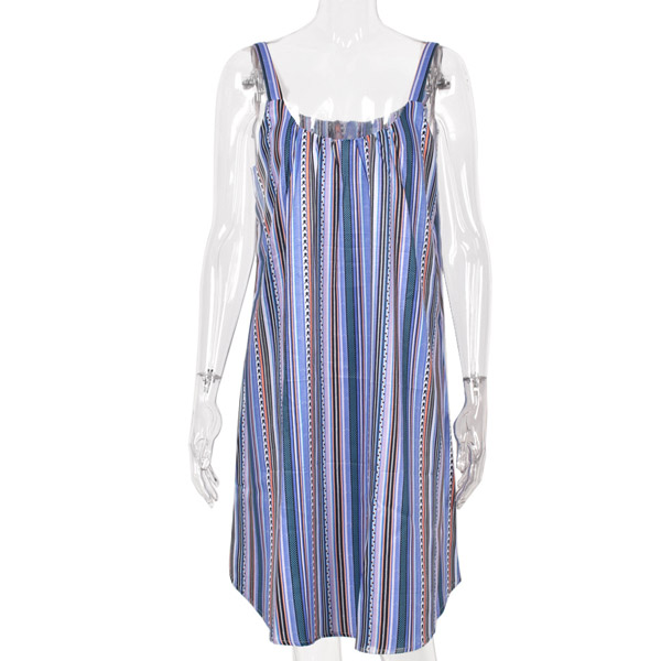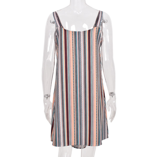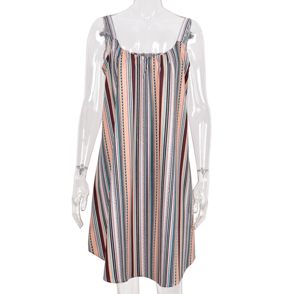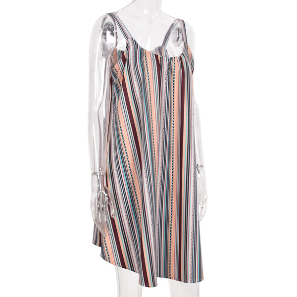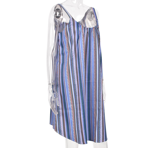 Sexy Backless Round Neck Loose Sling Stripe Dress