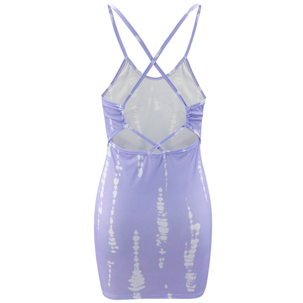 Sexy Backless Round Neck Slim Fit Printed Sling Dress