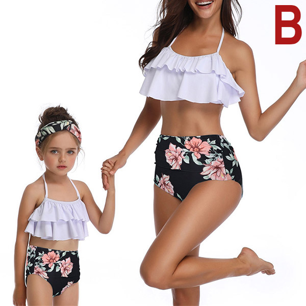 You can easily be a pleasant sight to draw more attention when you are walking on the beach with your daughter by wearing this parent-child bikini set! Including a backless ruffle top and a high waist briefs,this bikini set can offer you a cozy yet stylish beach days. So why not buy one set for your daughter and yourself?
