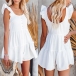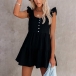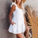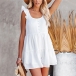 Except for the dresses,this romper is your another good choice in these summer days. Crafted in a solid color,the backless and ruffle cuff design can better exude your sweet yet flirty side,while the high waist design can showcase your slender figure. For your daily out in these sunny days,you can add a sweet straw hat for a more perfect appearance.
