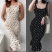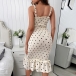 Sexy Backless Ruffle Hem Dots Printed Slim Fit Sling Dress