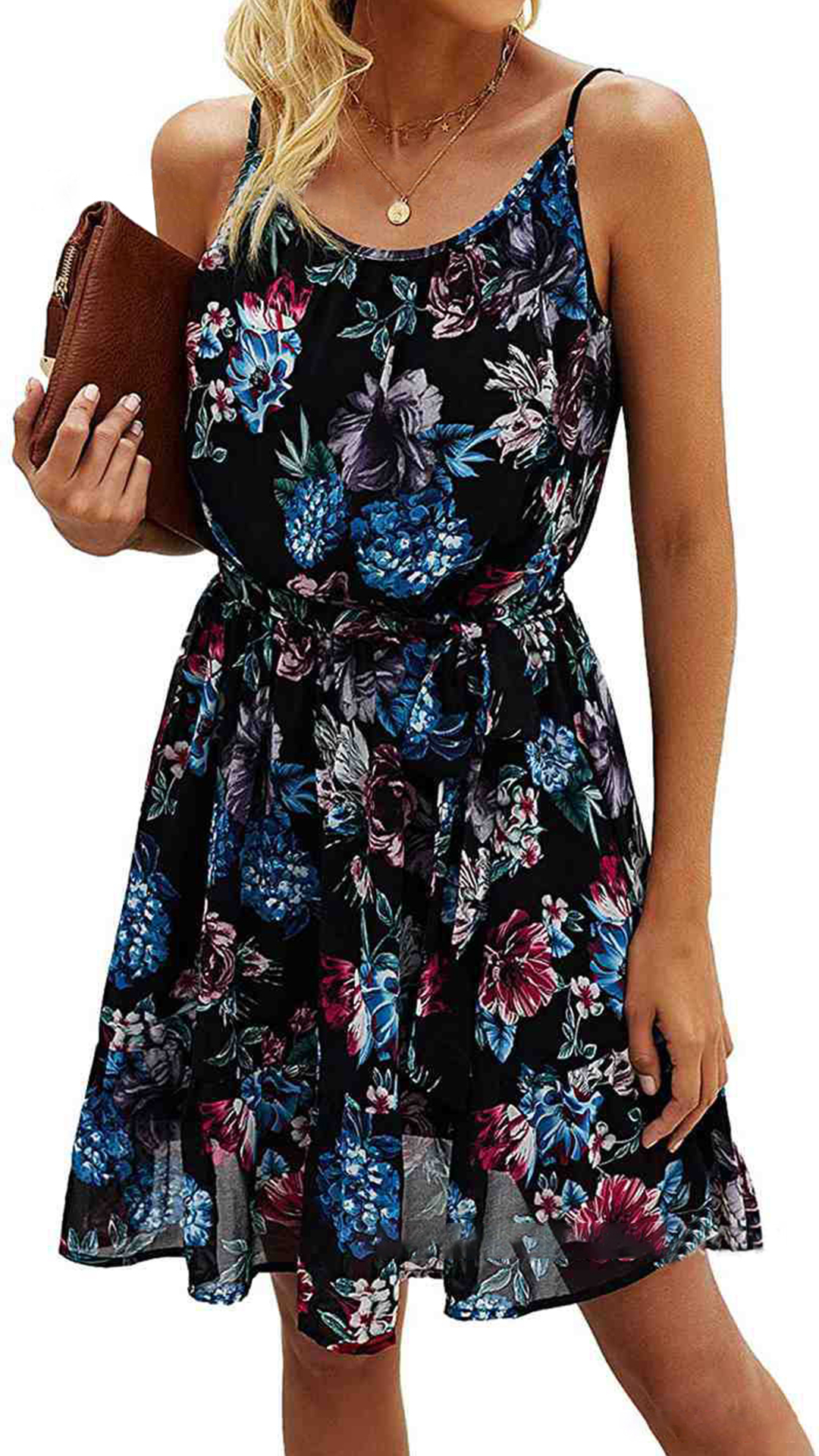Hey,girls,you can just express your charming and beautiful summer style with the help of this sling dress. The vibrant floral print details make this piece look so eye-catching and attractive,while the backless and ruffle hem design will lend you some sweet and flirty vibes. No matter for your daily out or night dating,this dress can be your wise choice.