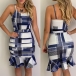 Sexy Backless Ruffle Hem Slim Fit Plaid Printed Sling Dress