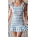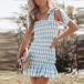 Sexy Backless Ruffle Hem Slim Fit Sling Plaid Dress