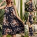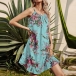 Sexy Backless Ruffle Hem Sling Printed Dress