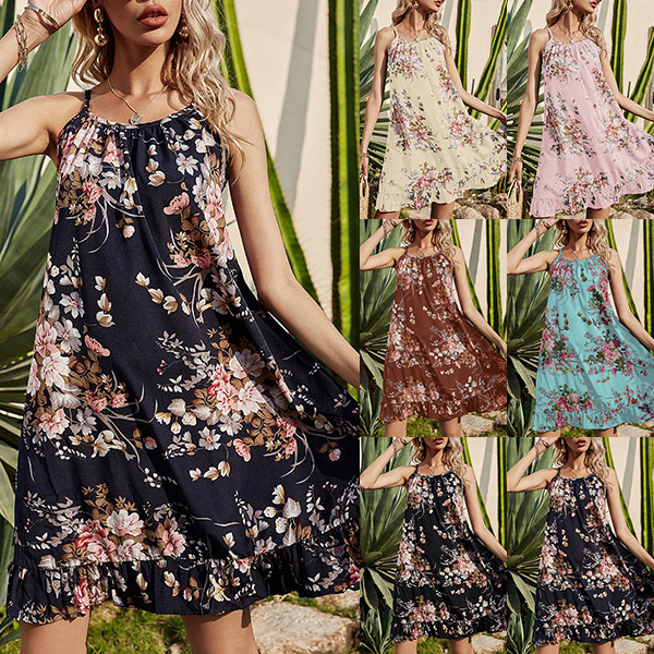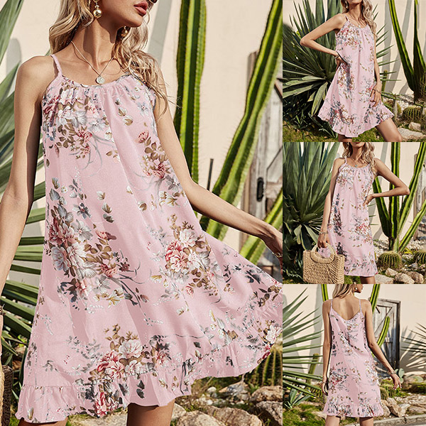 To greet the sun-soaked summer days,you can just slip into this beautiful printed dress. The printed details make this piece look so eye-catching and beautiful,while the ruffle hem and sling design can exude your feminine and flirty vibes. For your beach days and weekend trips,you can trust in this piece to express your beauty and charm.