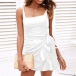 Sexy Backless Ruffle Hem Solid Color Slim Fit Sling Dress