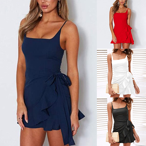 Seductive appeal can come easily once you slip into this dress. Sling and backless design can make you look more alluring,while the ruffle hem design will enhance your feminine appeal. For the sun-soaked summer days,this dress can be your wise choice to express your beauty and charm.