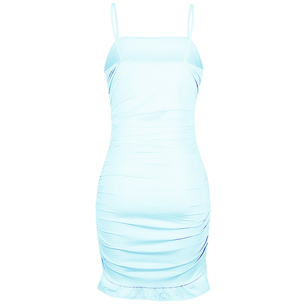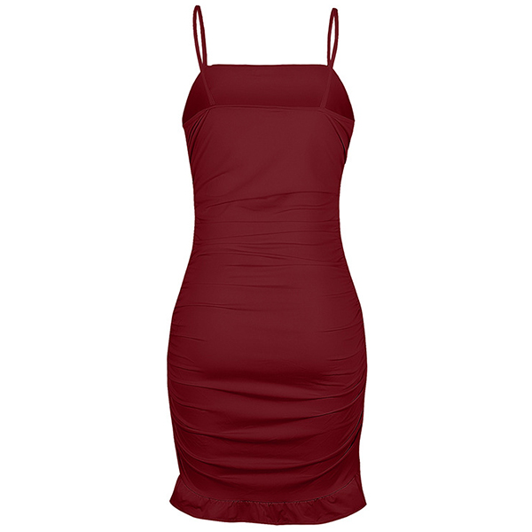 Sexy Backless Ruffle Hem Solid Color Slim Fit Sling Dress