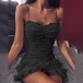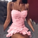 Sexy Backless Ruffle Hem Solid Color Slim Fit Sling Dress