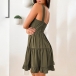 Sexy Backless Ruffle Hem Solid Color Sling Dress