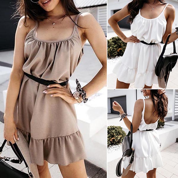 Greet the sun-soaked summer days with this sexy and dreamy dress. Sling style,with backless and ruffle hem design,which can offer you a more alluring look. Moreover,its soft and breathable fabric can ensure you a comfortable day. You can just slip into this dress to start your wonderful day.