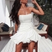 Sexy Backless Ruffle Hem Solid Color Sling Dress