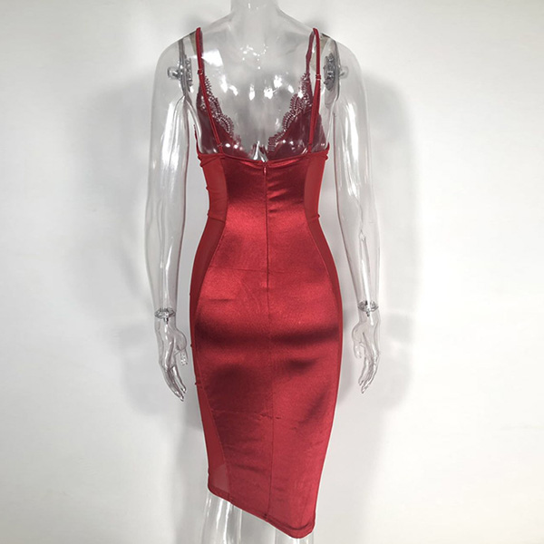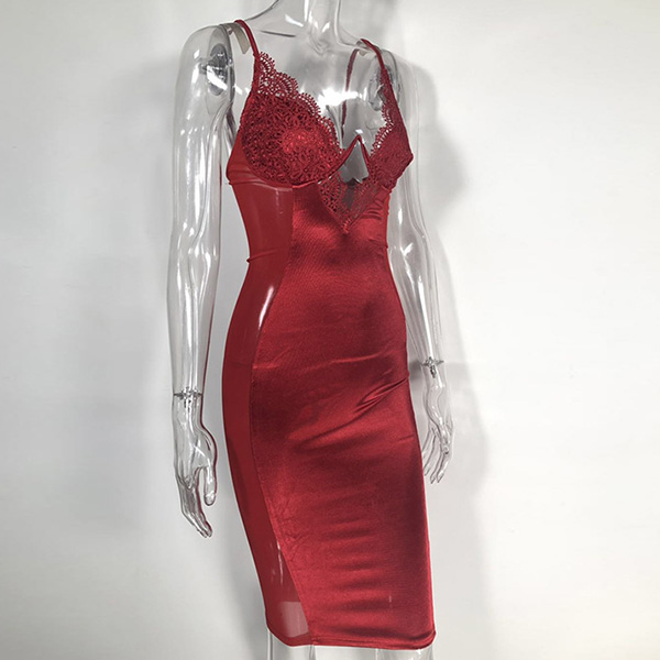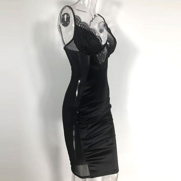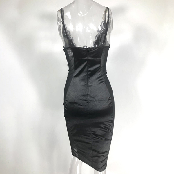 You can easily arouse a splash once you wear this dress. Sling style,its backless,deep v-neck,see-through gauze and lace spliced details make this piece look so sexy and alluring. Thanks to the tight silhouette,your seductive curve also can have a display in this dress. You are bound to be the focus in this little stunner.