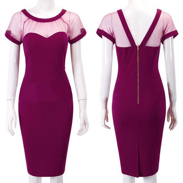 see-through gauze spliced design perfect demonstrate your charming femininity,while its fit silhouette design lends you a graceful