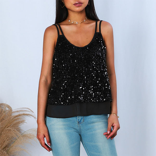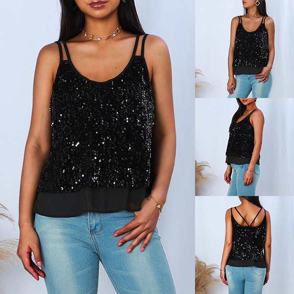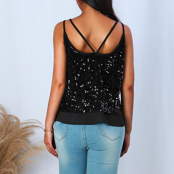 Greet the sun-soaked summer days with a dreamy and relaxed piece such as this top. Sling and backless design will make you look sexy and flirty,while the sequin details will make it look more shinning and attractive. Like it? Then invite it to your wardrobe!