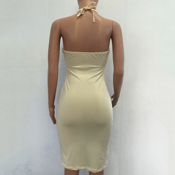 Look extra stunning when you slip into this dress. Halter style,designed with backless and a fit silhouette,this dress is